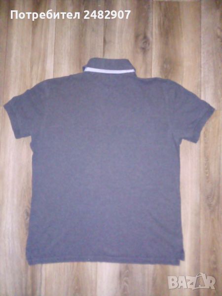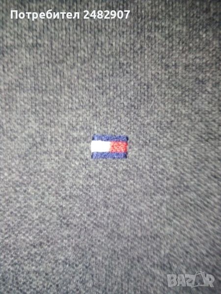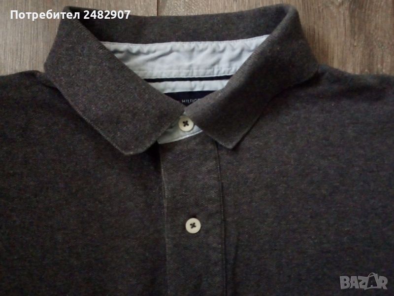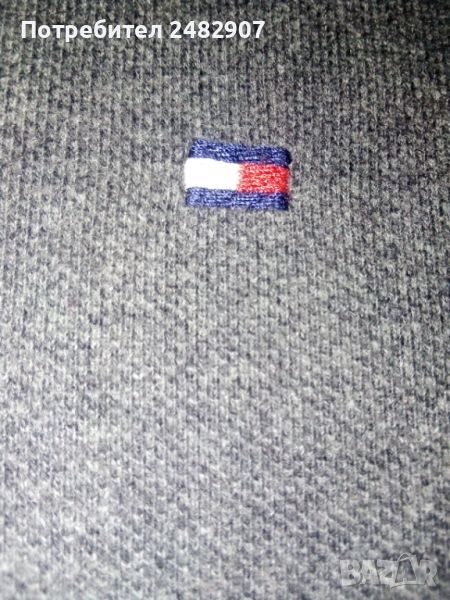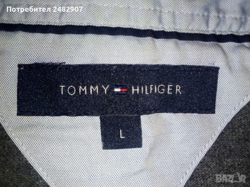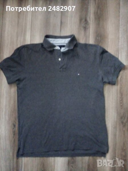 Оригинална сива мъжка тениска Tommy Hilfiger с яка и копчета, размер L. Съдържа 100 % памук. Ширина в раменете - 52 см, ширина под мишниците - 63 см, ширина в долната част - 60 см, дължина от рамото до долу - 73 см, дължина на ръкава от рамото - 22 см, ширина на ръкава в долната част - 16 см. Много запазена, почти не е използвана.