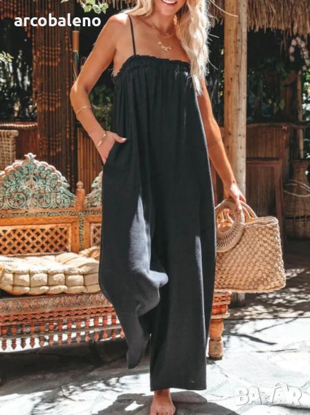 Издигнете стила си с нашия нов свободен моден гащеризон с широки крачоли и висока талия. Изработено от смес от 30% памук и 70% лен, това шикозно парче излъчва непринудена елегантност. Съчетайте го с ефектен колан и сандали за модерен външен вид. Идеален за летни поводи, този гащеризон ще ви държи хладни и стилни през целия сезон.