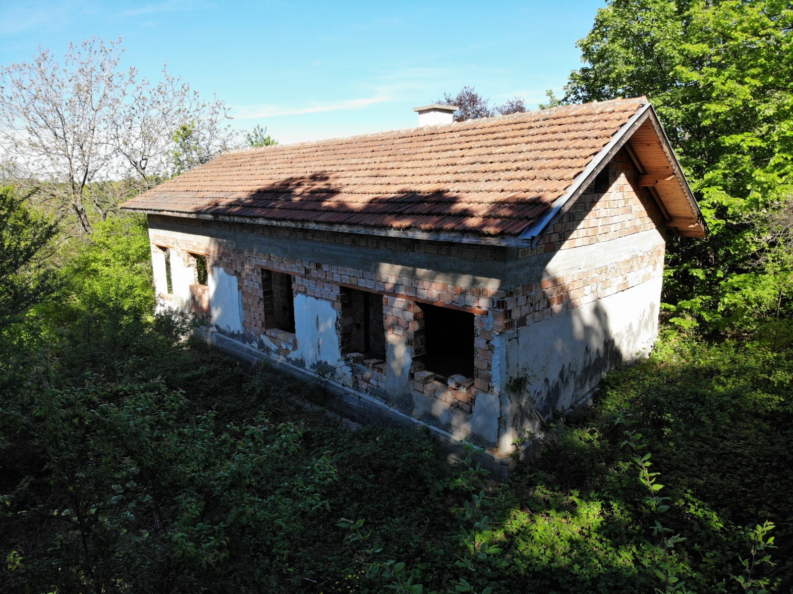 Продава се масивна едноетажна вила с голям парцел и достъп до асфалтов път разположена на няколко километра от центъра на гр.Враца. Вилата е на един етаж, с плоча и разполага с няколко помещения замислени като голям хол с кухня и трапезария, две спални и две бани с тоалетни. Преди време е започнало пресутройство на сградата благодарение на което е бил изграден изцяло нов покрив, който е в много добро състояние. Таванското пространство е голямо и е възможно там да се обособи още едно помещение (спалня) или да бъде използвано като складово помещение за стари вещи, дрехи, мебели и др. В имота има геран както и електрозахранване. Граничи с пътя за с.Веслец и се намира в близост до автобусна спирка, която се обслужва от автобусите пътуващи между града и близкото село. В имота е имало още една по-малка сграда, която е била използвана като склад, но към момента е премахната. Все още е отбелязана на скицата, което предоставя възможност на нейно място да бъде изградена друга сграда с подобни размери и по-полезни функции гараж, лятна кухня, работилница и тн. Имотът предлага много хубава и тиха локация сред природата на по-малко от 10 минути път с кола от идеалния център на града.