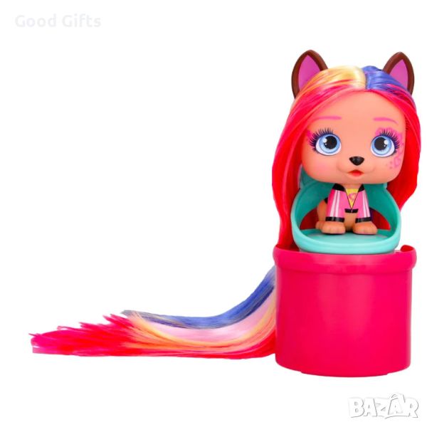 VIP PETS BOW POWER пристигат по-смели и обединени от всякога! Има 6 кученца за събиране. Всяка кукла включва 8+ изненади, сред които различни аксесоари за създаване на градска визия! Точно като в сериала! Кой VIP PET ще избереш? Този комплект включва и фризьорски стол за оформяне на дългата коса на твоето кученце.