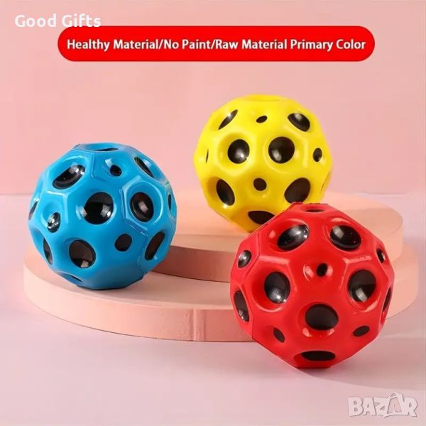 Забавлявайте се и освободете стреса с Moon Ball – идеалната скачаща топка за всички възрасти! Поръчайте сега и гарантирайте себе си и своите близки невероятни моменти на забавление и релаксация. Не се колебайте, Moon Ball е перфектният аксесоар за игра и анти-стрес.Moon Ball скачаща топка с уникален дизайн, която е идеална за разнообразни забавления и преодоляване на стреса. С нейната изключителна отскокливост, Moon Ball е перфектното решение за всеки, който търси удоволствие и разнообразие. Използвайте я като обикновена анти-стрес топка за мачкане и релаксиране. Нейната приятна текстура и удобна форма я правят перфектна за освобождаване на напрежение и стрес. Но Moon Ball е повече от просто анти-стрес топка. С нея може да играете най-различни игри, благодарение на нейната висока отскокливост. Поканете приятели и се забавлявайте с игри като футбол, волейбол или дори измислете своя собствена игра. Или използвайте я за игра с вашето куче – топката ще бъде прекрасен начин да се забавлявате и да поддържате активността на вашия четириног приятел. Независимо дали се нуждаете от удоволствие, релаксация или просто желаете да се забавлявате, Moon Ball е идеалният избор за всички възрасти и за всички поводи.