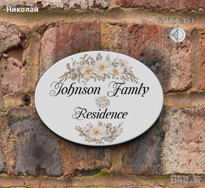 Персонализирана овална керамична плочка ръчна изработка - с адрес, име или номер.