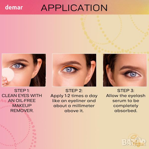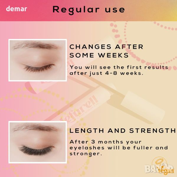 Представяме ви този серум за мигли за спираща дъха визия на очите. Насладете се на дълги и гъсти мигли само за 30 дни с нашата нежна формула против стареене. Произведени в Германия с най-високи стандарти за качество е даден приоритет на безопасността и ефективността. Тази веганска формула без хормони съдържа пептиди, кофеин, екстракт от кресон и аминокиселини за стимулиране на растежа и естествено подхранване на миглите. Лесен за нанасяне като очна линия, подходящ е за всички, включително тези с чувствителни очи, удължени мигли или контактни лещи. Кажете здравей на естествено красивите мигли с този лесен за използване серум.