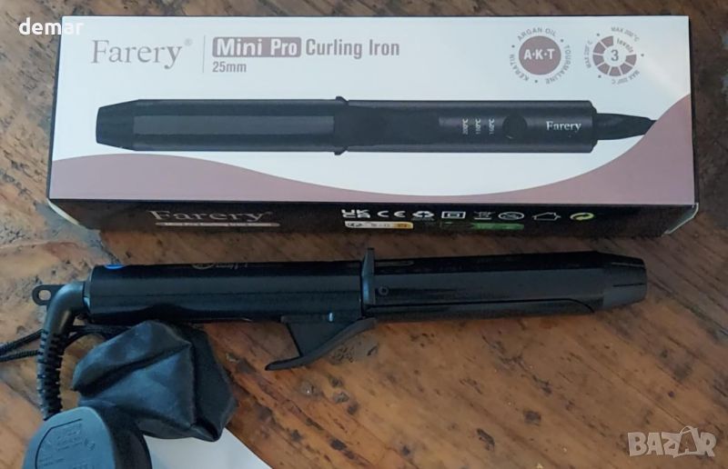 FARERY Маша за коса за къдрене 25 мм керамична с кератин и арганово масло, двойно напрежение