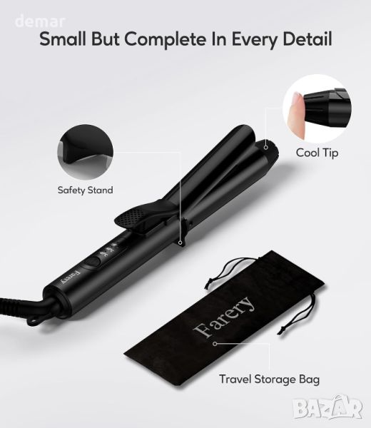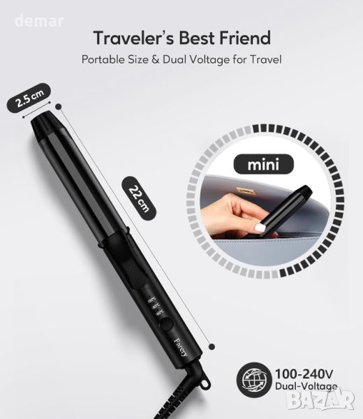 Представяме ви Farery Mini Curling Tongs—важен спътник на пътешественика. Със съвместимост с двойно напрежение (100V-240V), той е идеален за пътуване по целия свят, като се побира лесно във всяка чанта или чанта с компактния си размер и лек дизайн. Снабден с 25 мм цилиндър, подходящ за къса, средна и дълга коса, той предлага гъвкавост при оформяне. С три регулируеми температурни настройки и 100% дизайн против изгаряне, той осигурява безопасно и прецизно оформяне. Напоен с кератин, арганово масло и турмалин, керамичният цилиндър осигурява ултра-бляскави и дълготрайни къдрици, като същевременно предотвратява увреждане. В комплект с изключително дълъг кабел от 6,5 фута и чанта за съхранение при пътуване, Farery Mini Curling Tongs са идеални както за домашна употреба, така и за пътуване, осигурявайки оформяне без заплитане, където и да отидете.3.5