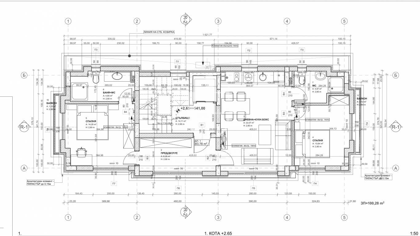 Сградата е с разгъната застроена площ от 450 кв.м. и е ситуирана върху парцел с площ от 300 кв.м. Проектирана е на четири нива, като включва три надземни гаража и осем паркоместа във вътрешния двор. Строителството се изпълнява с висококачествена