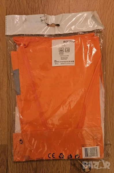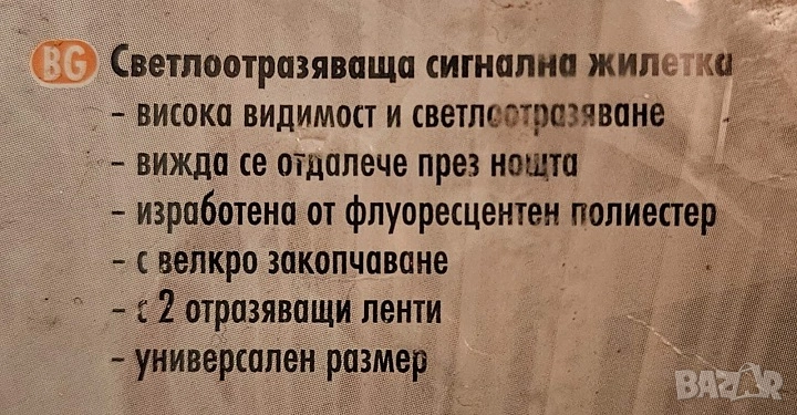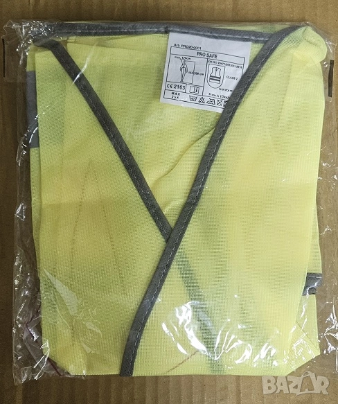 Светлоотразителна жилетка / елек, изработена от плат 100% полиестер с две хоризонтални светлоотразителни ленти, универсален размер и висока степен на видимост.