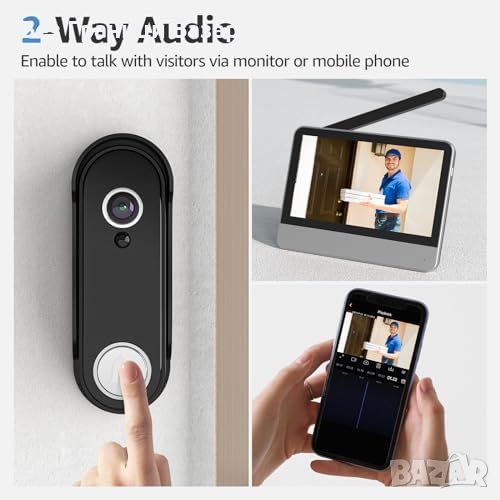 7-инчов 1080P сензорен дисплей: Ясен образ, лесно наблюдение и контрол на функциите - отговаряне на повиквания, отключване на врати и мониторинг.