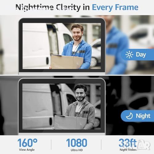 Нощно виждане и двупосочно аудио: Кристално ясна визия денем и нощем, реални видео разговори чрез монитора или телефона.
