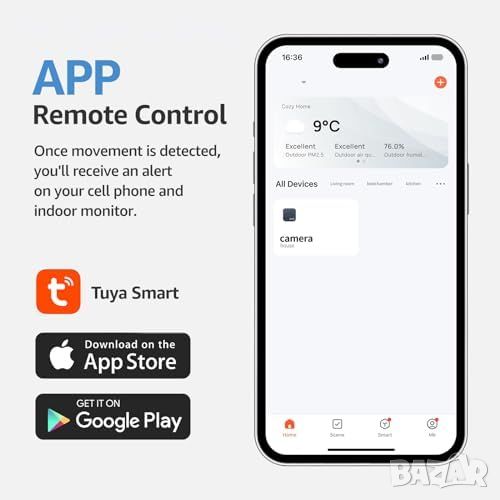 160° широк ъгъл и детекция на движение: Намалява слепите зони, интелигентна детекция на движение с аларми и известия.