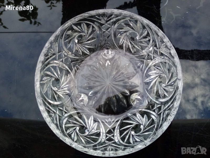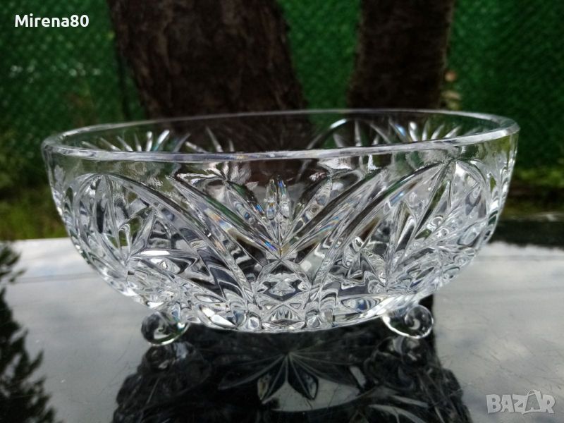 Полски оловен кристал, много красива фруктиера на крачета. Изключително богато гравирана, и много бляскава. Диам. 18, вис. 8.5 см, тегло - 1.1 кг. Отлично състояние !
