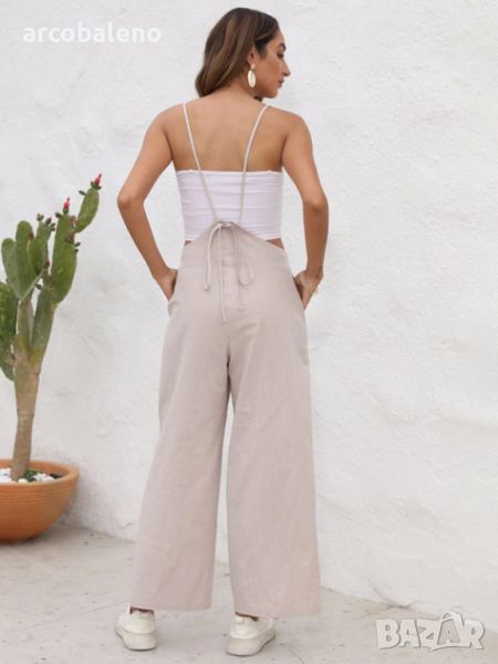 Добавете нотка стил към гардероба си с нашите нови едноцветни ежедневни панталони с презрамки. Изработени от 100% полиестер, тези панталони се отличават със спокойна кройка и са идеални за всеки сезон. Независимо дали отивате на случайно събитие или просто излизате с приятели, тези универсални панталони са задължителни.