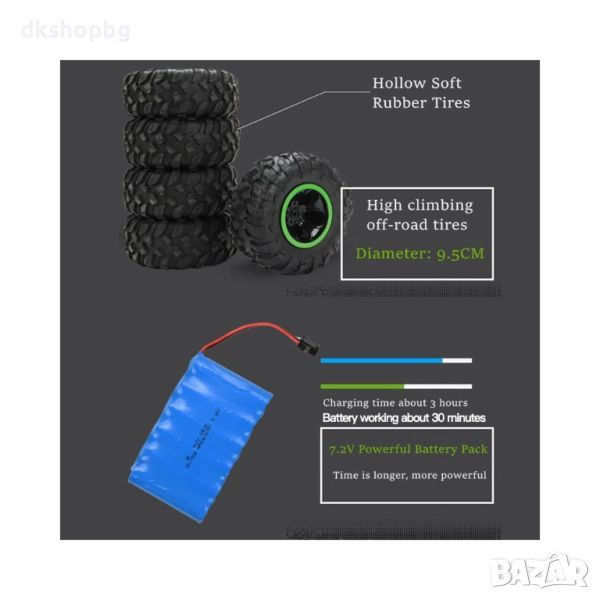 Този страхотен автомобил с дистанционно управление може да развие впечатляваща скорост и е създаден за пресечен терен. Катерете се по скали и преодолявайте пясъчни дюни с увереност и лекота!