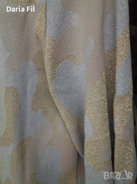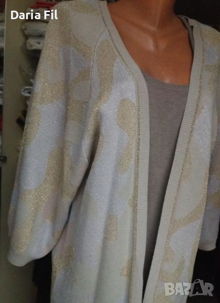 РАЗКОШНА дълга жилетка в блестящо сиво-бежово милитъри плетиво → Обява 45790537