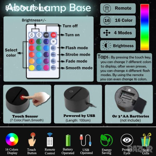 【Сензорно и дистанционно управление】: можете да докоснете или използвате дистанционното управление, за да отворите или затворите нощната лампа, да промените цвета, има 7 вида промени на цвета (червено-зелено-синьо-жълто-циан-лилаво-бяло), ние сме оборудвани с USB кабел и можете също да инсталирате 3 * AA батерии в долната част на основата, когато лежите в леглото и не искате да излезете от това, можете да контролирате включването, изключването или промяната цвета на светлината с дистанционното управление. Той е толкова удобен за използване и лесен за работа.