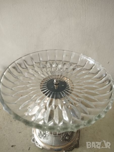 Посребрен метален корпус,кристален съд