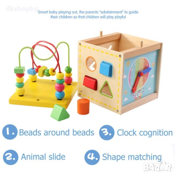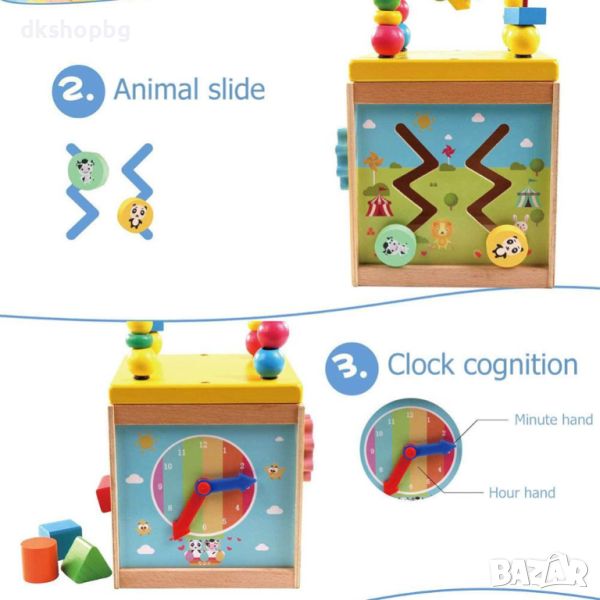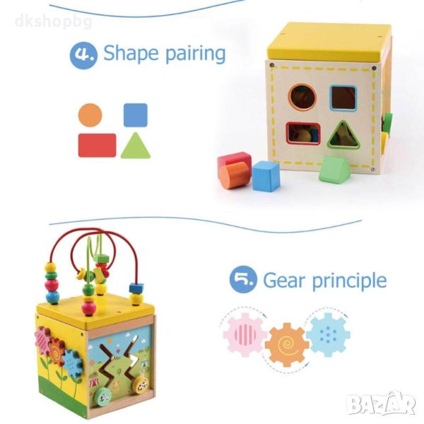 Всяка страна на куба има различна активност, която помага на децата да развиват своите двигателни умения като научават: цветове, цифри и форми.