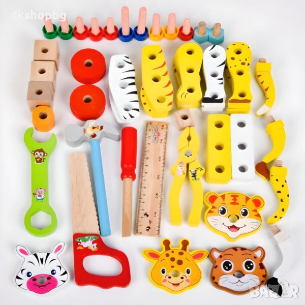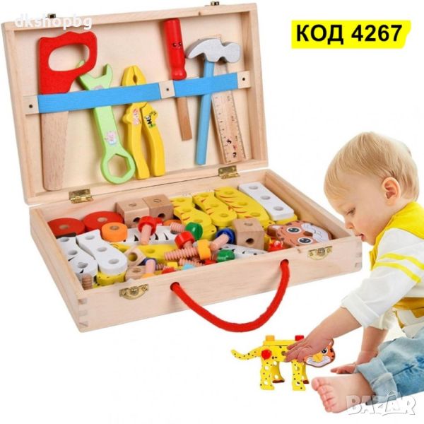 4267 Детски дървен куфар с инструменти и животни за сглобяване