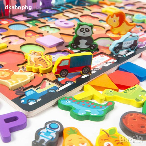 Изработен от висококачествени материали, пъзелът е здрав и безопасен за игра. С този учебен комплект вашето дете не само ще учи, но и ще се забавлява. Подарете му пъзел, който съчетава обучение и радост от играта."