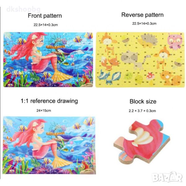 "Нашите детски пъзели са не само забавление, но и вълнуващ начин за стимулиране на въображението и развиване на логическото мислене. Съставен от 60 дървени части, този пъзел представлява различни приказни сюжети, които ще впечатлят и вдъхновят вашето дете. Всеки пъзел е изкусно илюстриран и предлага магически истории, които децата могат да изследват и сглобяват. В комплекта има малка метална кутийка за съхранение, която улеснява преноса и съхранението на частите. Този компактен и удобен формат прави пъзела перфектен за игра както вкъщи, така и навън. Изработен от висококачествено дърво, пъзелът е здрав и издръжлив. Той не само развива концентрацията и търпението на децата, но и ги въвежда в магически свят на приказките. Подарете на вашето дете вълнуващо преживяване с този детски пъзел, който съчетава забавление и обучение."