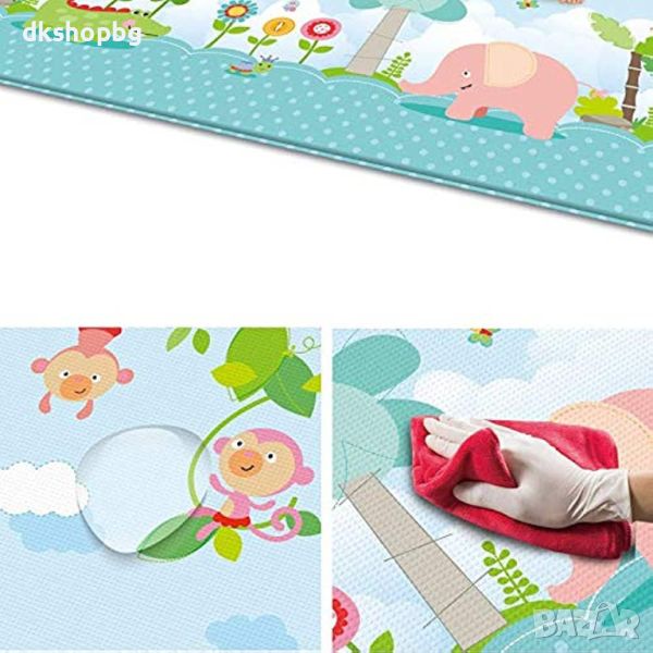 Детско килимче за пълзене и игра от термо пяна с крокодили и маймунки в комплект с чантичка за съхранение