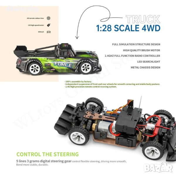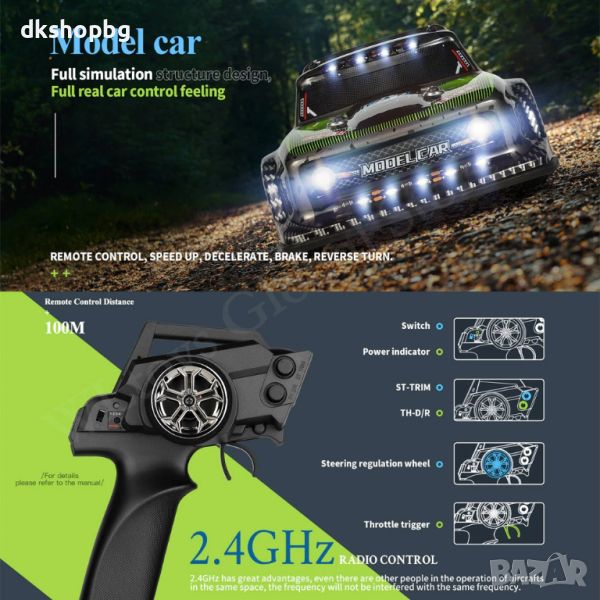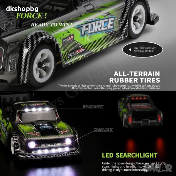Разполага с 2,4 GHz система за управление, страхотната отпечатана обвивка и твърдото изцяло алуминиево шаси предлагат гъвкаво и стабилно шофиране, като същевременно осигуряват по-дълъг експлоатационен живот. Тази популярна кола може да ви даде отлично усещане за контрол и реалистично шофиране.