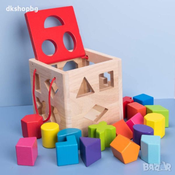 3582 "Дървеният куб с отвори и геометрични фигури → Обява 45792033