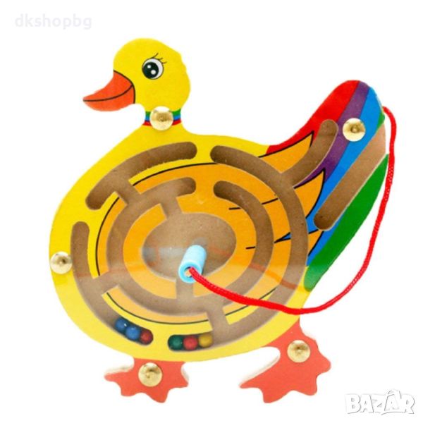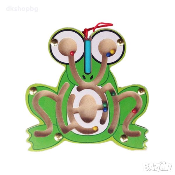 Магнитен лабиринт - Мече, Жаба, Пате или риба. Тя е подходящa за деца над 18-месечна възраст и има образователен характер. Играта се състои от лабиринт изработен от дървен материал, вградена магнитна "писалка" и 6 топчета. Дъската е изработена от дърво, боядисано с безвредни бои на водна основа. Лабиринтът ще стимулира наблюдателността, развива фината моторика и логическото мислене на малчуганите.