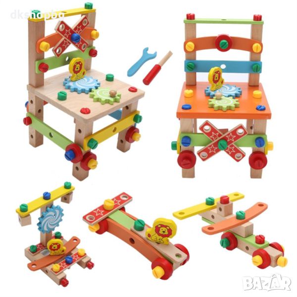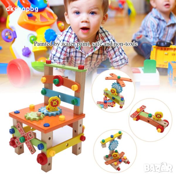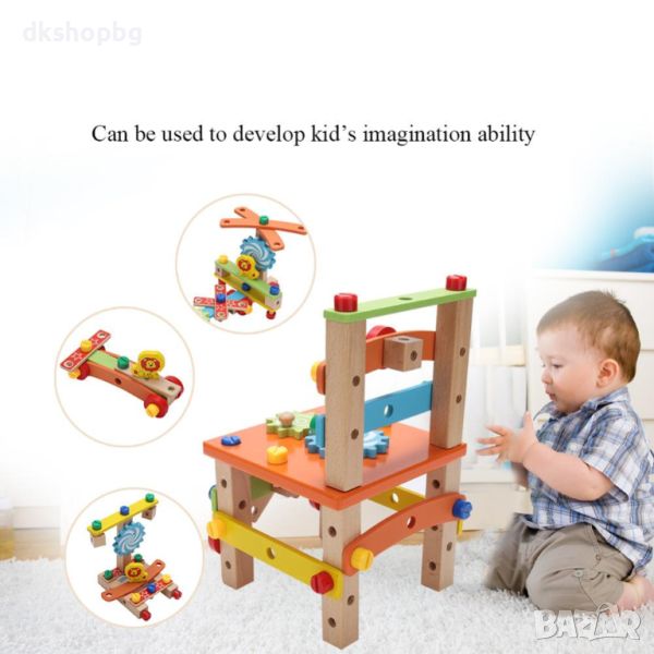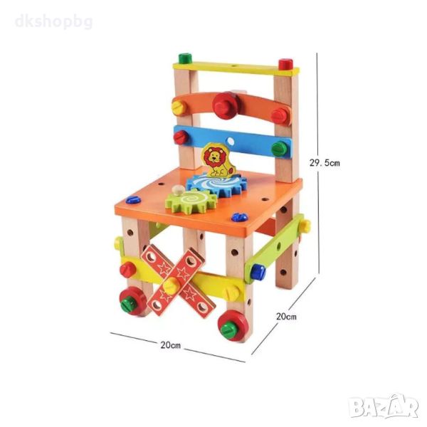 Като строителна играчка за сглобяване и като истински стол: Може да се използва и като истински стол, на който децата могат да седнат, след като приключат сглобяването. Така те се чувстват горди от себе си. Доверието е важно по време на растежа на детето.