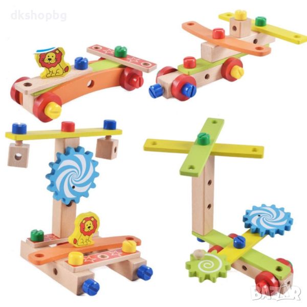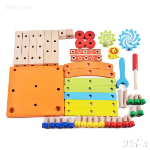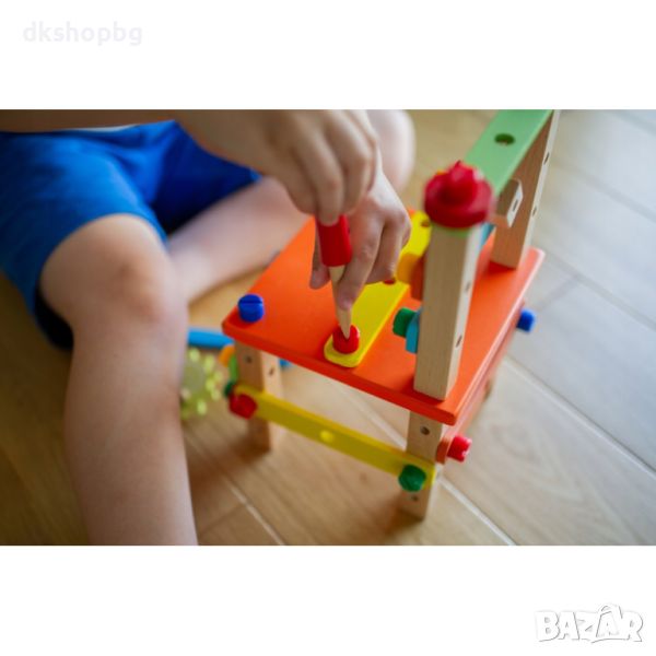 Всички части са изработени от висококачествено дърво, което е тествано за деца, а размерът е предназначен и за деца, дори инструментът за болтове и гайки е здрав и подходящ за деца.
