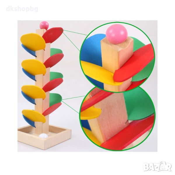 3600 Дървена играчка - пъзел 'Дърво с падащи цветни листа и 2 броя топчета' → Обява 45792590