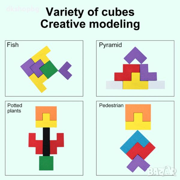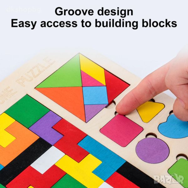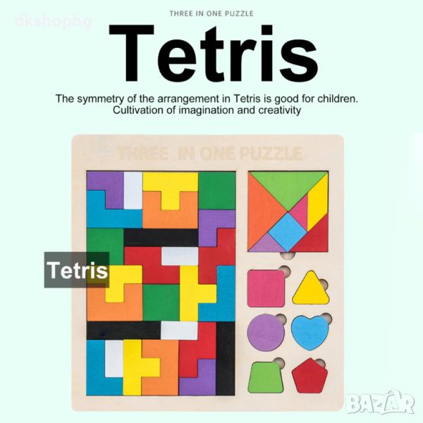 Съставен от разноцветни дървени части, всяка с уникален размер и форма, пъзелът насърчава децата да разпознават и съчетават частите, за да създадат цялостна картинка. Този процес не само засилва координацията и моториката на детето, но и го учи логиката и реда.