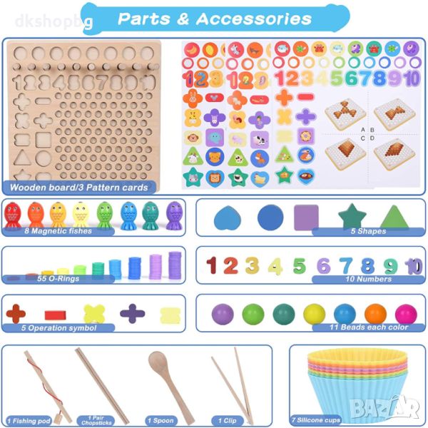 55 х цветни мъниста,8 рибки и 70 топки
