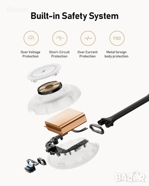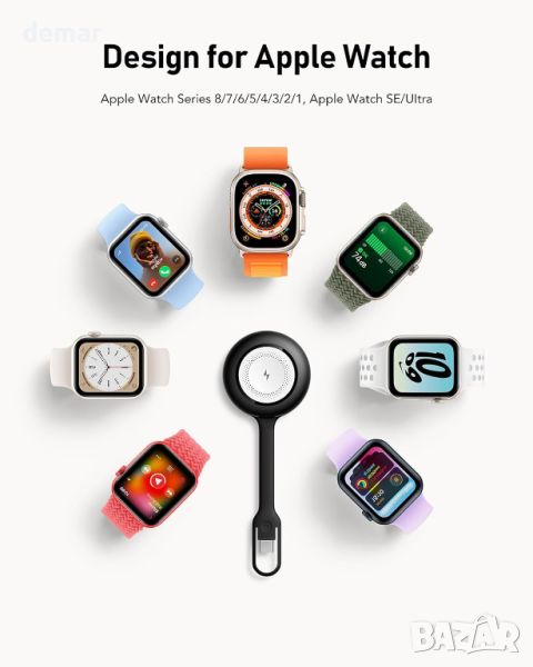 Това преносимо зарядно устройство за Apple Watch разполага със силен магнитен модул за безжично зареждане, съвместим с Apple Watch Series 1 до 9, осигуряващ бързо и сигурно зареждане. Компактният му дизайн и вградената 1200mAh захранваща батерия го правят идеален за пътуване, като се побира лесно в джобове или чанти. Зарядното устройство също така поддържа pass-through технология, позволяваща зареждане на устройството, докато презареждате самата захранваща банка. В допълнение, той включва множество вградени предпазни механизми за защита срещу свръхток, прегряване и презареждане, гарантирайки безопасност както за часовника, така и за зарядното устройство.