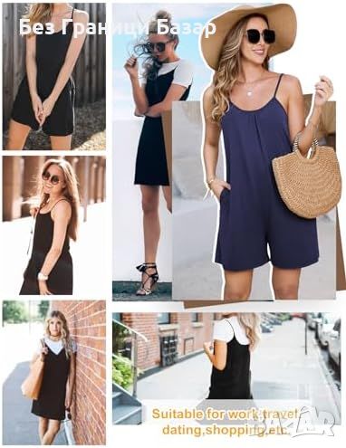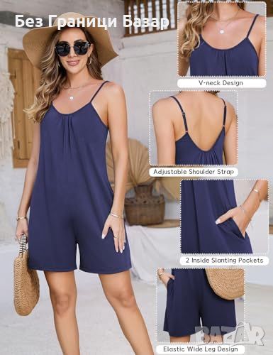 Нов Дамски летен гащеризон с джобове, без ръкави, V-образно деколте