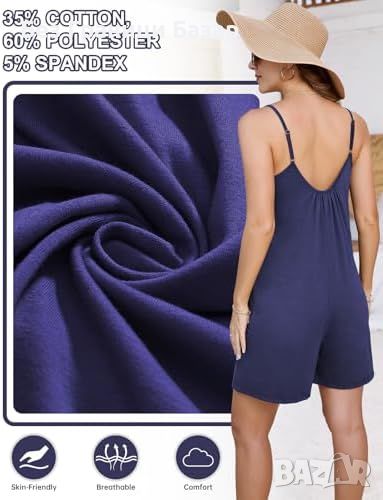 - Дизайн: Регулируеми презрамки, без ръкави, V-образно деколте, широки крачоли