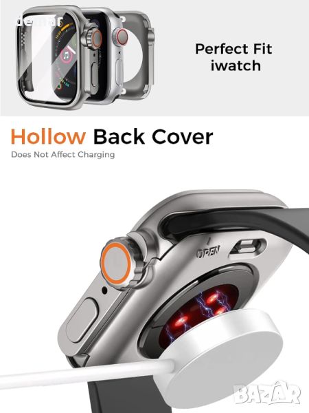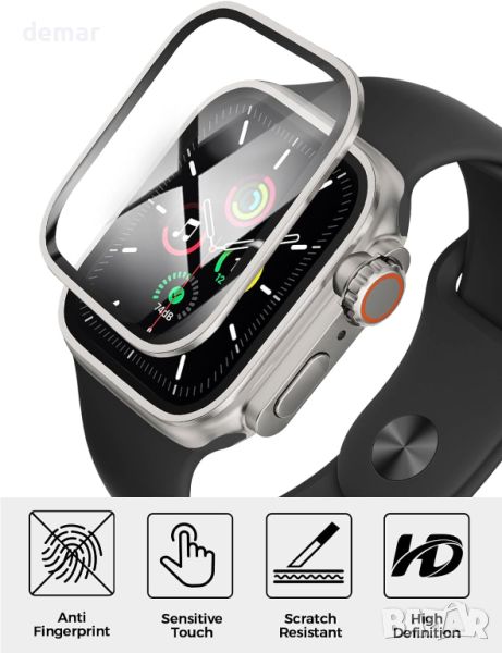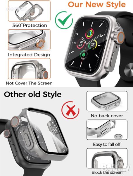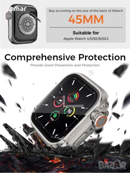 Този калъф за Apple Watch е напълно съвместим с моделите Series 9/8/7 45 мм, проектиран да имитира външния вид на серията Ultra на достъпна цена. Модернизираният модел Jessonly се отличава с по-гладък интегриран дизайн със залепваща подложка за въртящото се копче, което подобрява използваемостта. Той предлага 360-градусова защита с горен и долен капак, включително протектор за екрана, който не пречи на зареждането или функционалността. Калъфът е изработен от висококачествен, устойчив на удар PC материал и пакетът включва два калъфа (черен и титаниев оригинал) плюс хартия за почистване на стъкло. Съвет: Поради кухия дизайн на задния капак на защитната обвивка не може да се използва за плуване или къпане.
