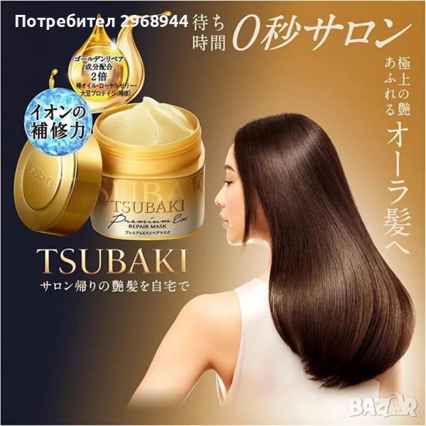 Shiseido Tsubaki Premium Repair Mask използва най-новата иновативна технология CMC (Cell Membrane Complex), която незабавно прониква дълбоко в косъма и запечатва кутикулата, давайки резултати като след посещение в салон за красота с нулево време на изчакване. Отличава се с най-високата концентрация на характерното за Shiseido Tsubaki масло от японска камелия в гамата балсам/терапия за по-добро възстановяване и придава естествен блясък. Соев протеин, аминокиселини, пчелно млечице и глицерин възстановяват, укрепват и овлажняват косата.
