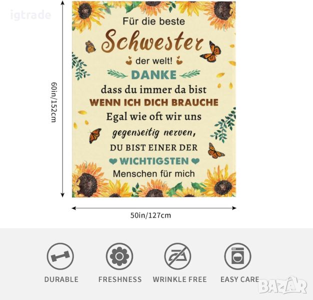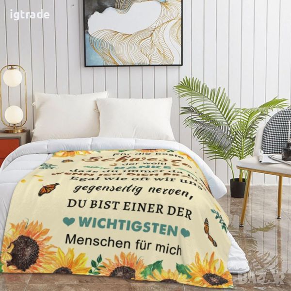 Подаръци за сестра: Това меко одеяло е идеален подарък за сестра, с любовни думи, изписани върху него, които дават на сестра ви усещане за изпълненост с вашата любов. Този персонализиран подарък за голяма сестра може да й донесе топлина по всяко време.