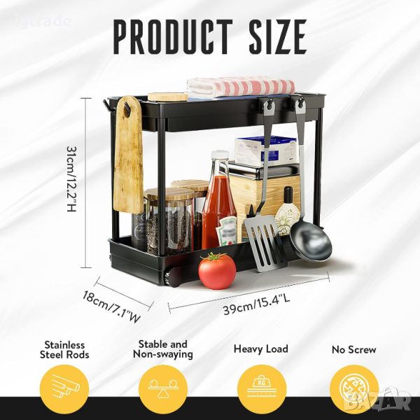 【2 броя органайзер под мивката】 - Размер в сглобен вид: 39 см Д x 18 см Ш x 31 см В. Долното ниво може да побере бутилки до 28 см, което го прави подходящ за различни размери и височини на бутилки и съдове. Може да се използва и като офис и обикновен рафт в спалнята. Подходящ за съхранение на козметика, лакове за нокти, кърпи, сапун, шампоан и други в банята.