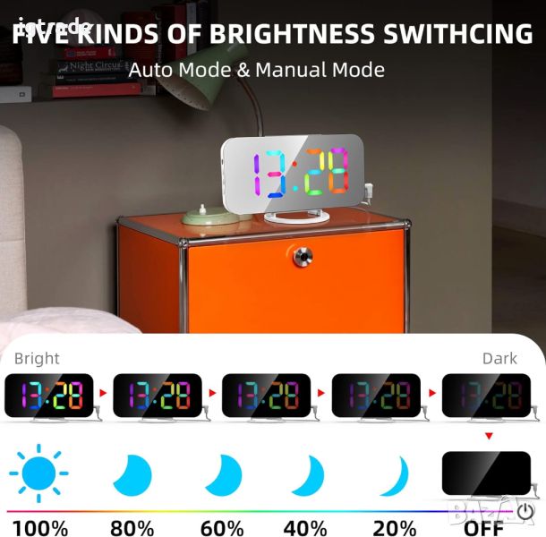 ⏰[Регулируема яркост] Този будилник има 3 регулируеми нива на яркост. По време на зареждане LED екранът винаги свети и автоматично настройва яркостта в 3 нива за различни периоди от време. Можете също така да регулирате яркостта ръчно в 3 нива.