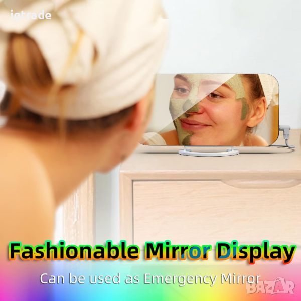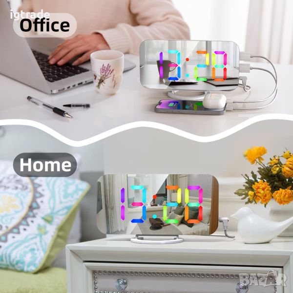 ⏰Будилникът разполага с 6,5-инчов LED огледален дисплей, стилен дизайн и добра четимост. Подходящ за офис, дом, нощно шкафче, декорация на маса.