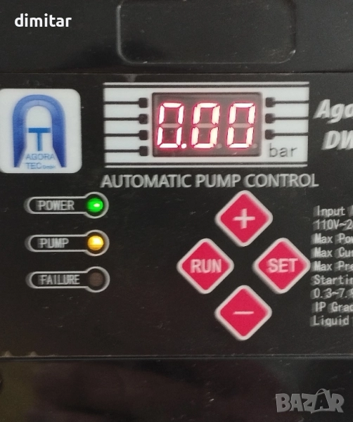 Пресостат воден Agora tec DWv18, дигитални настройки. Нов.