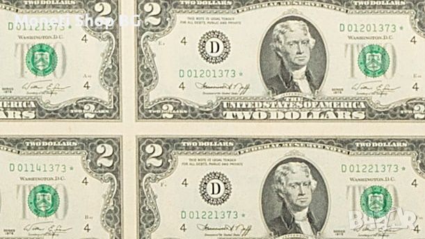 На Вашето внимание един уникален сет с поредни номера от неразрязан лист банкноти -16 x $2 долара САЩ