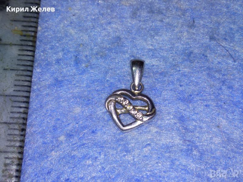 ПРЕЛЕСТЕН СЪРЦЕВИДЕН СРЕБЪРЕН ПЕНДАНТ СРЕБРО 925 с БЯЛА ПОЗЛАТА и ЦИРКОНИ АРТ МЕДАЛЬОН 45522