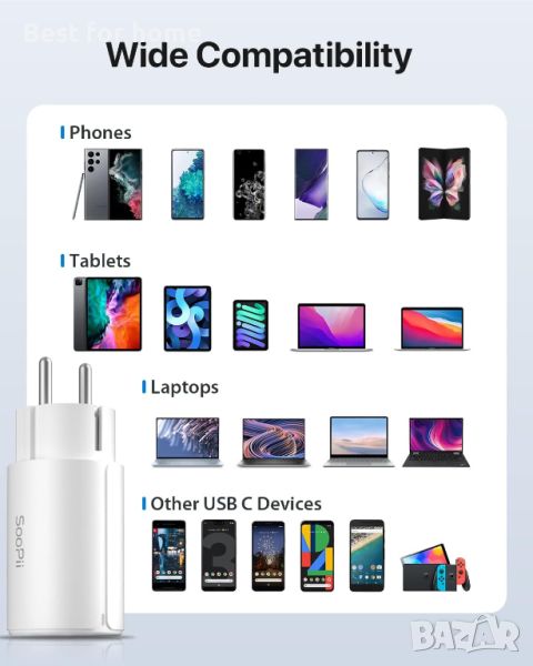Бързо мощно зарядно 65 W SooPii USB C, за Apple и др