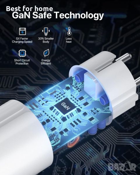 Вграден GaN интелигентен чип, подобрена структура на печатна платка, осигурява пълна безопасност за вашите заредени устройства и батерия, с 5 пъти по-бърза скорост на зареждане, 30% по-малко тяло, ви дава по-бързо и по-силно изживяване при зареждане.