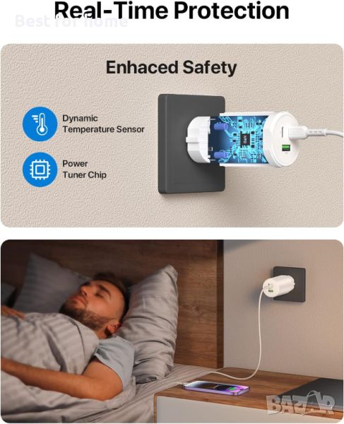 С 2 USB-C порта и USB-A порт, кажете сбогом на старите си зарядни устройства, активирайте бързо зареждане на вашия телефон, таблет и USB-C лаптоп от едно зарядно устройство.