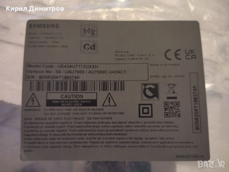 Samsung UE-43AU7172UXXH счупена матрица → Обява 45804769