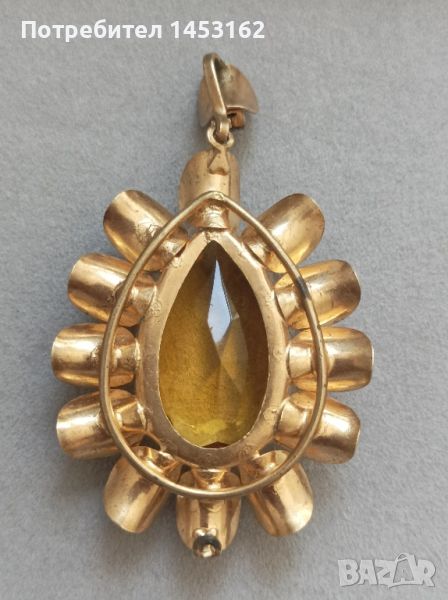 Старинна чешка висулка с масивен жълт кристал, невероятно красива с дължина:6,5 см